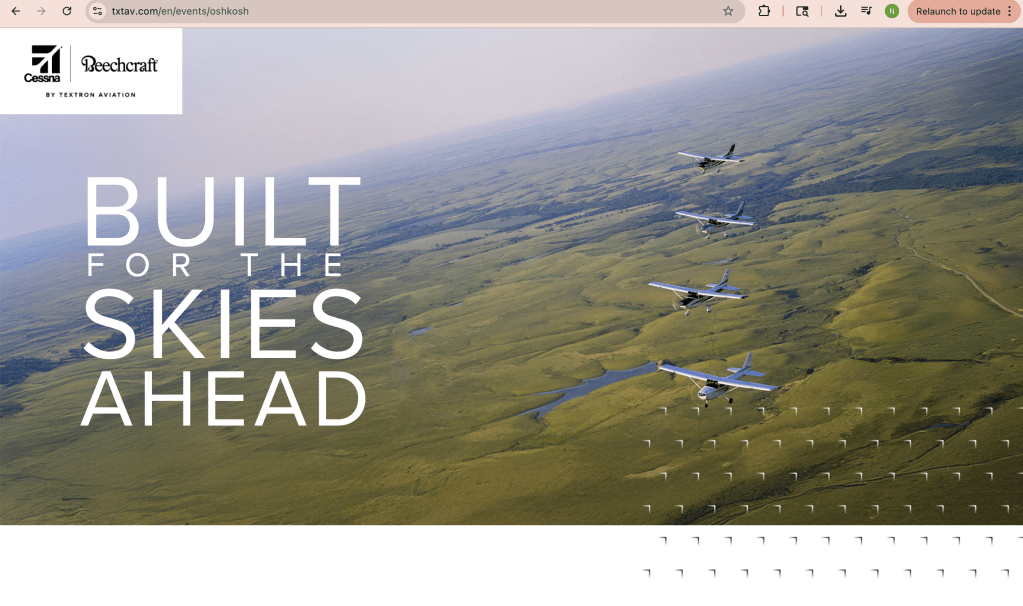 Through data-driven storytelling, modernized digital experiences, and cross-functional collaboration, I’ve helped position Textron Aviation as a brand built for the skies ahead — one that honors its legendary past while accelerating into the next era of connected, customer-centric aviation. From digital transformation initiatives and CRM optimization to event marketing and product launches, every touchpoint reflects a commitment to excellence, accessibility, and advancement in flight.